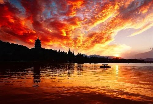 西湖的湖光山色引得无数文人骚客、艺术大师吟咏兴叹、泼墨挥毫。景区内遍布庙宇、亭台、宝塔、园林,其间点缀着奇花异木、岸堤岛屿,为江南的杭州城增添了无限美景。数百年来,西湖景区对中国其他地区乃至日本和韩国的园林设计都产生了影响,在景观营造的文化传统中,西湖是对天人合一这一理想境界的最佳阐释。